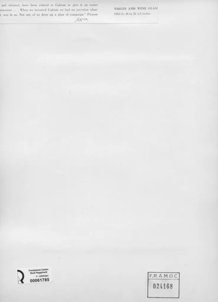 Picasso, Pablo, Violin and wine glass