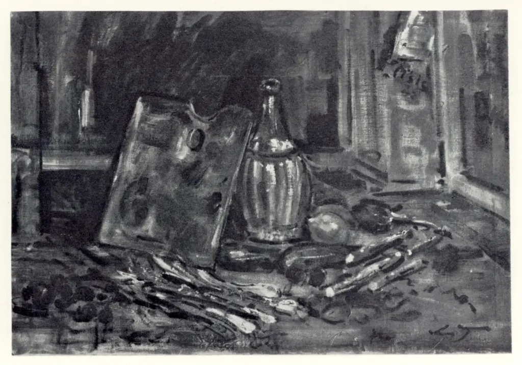 De Pisis, Filippo , Natura morta con tavolozza e fiasco De Pisis, Filippo