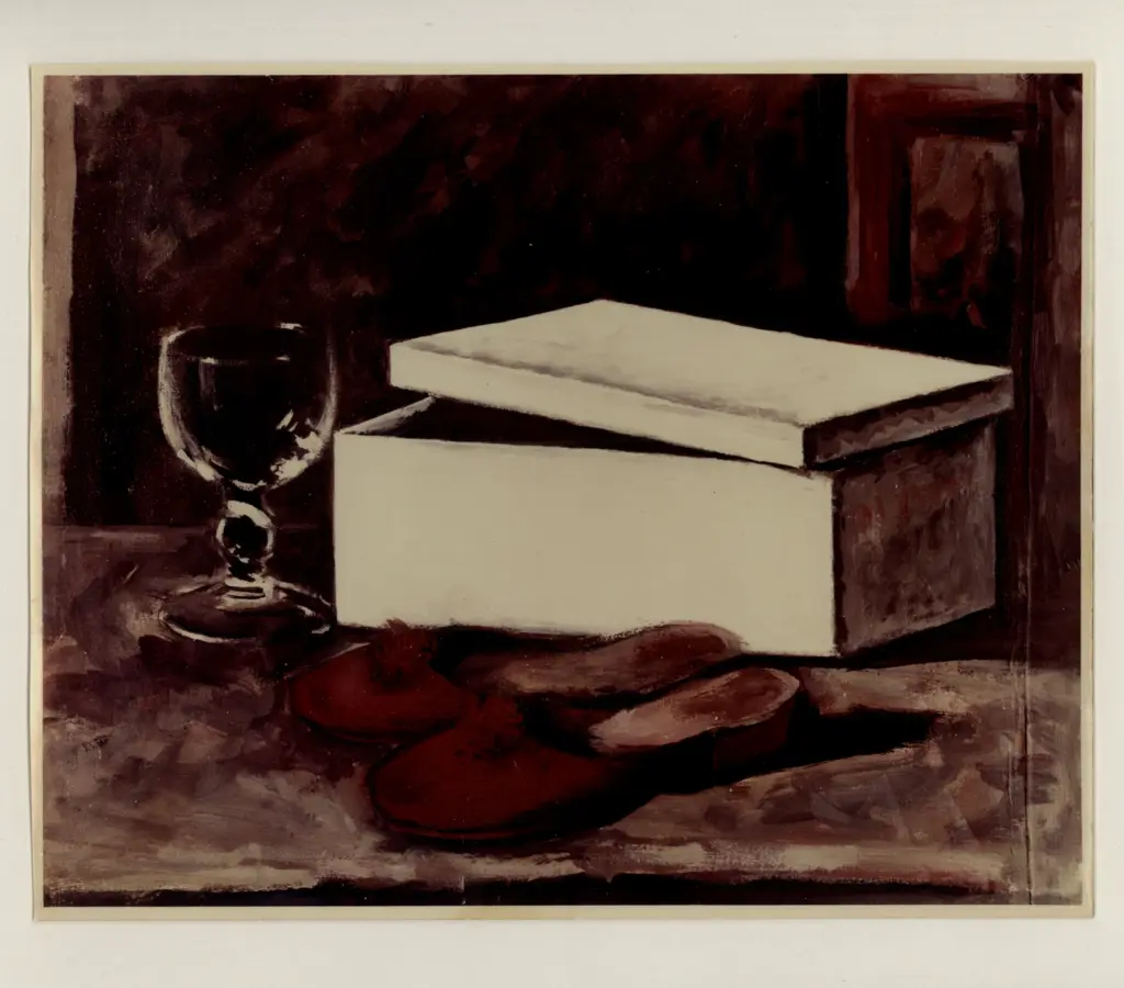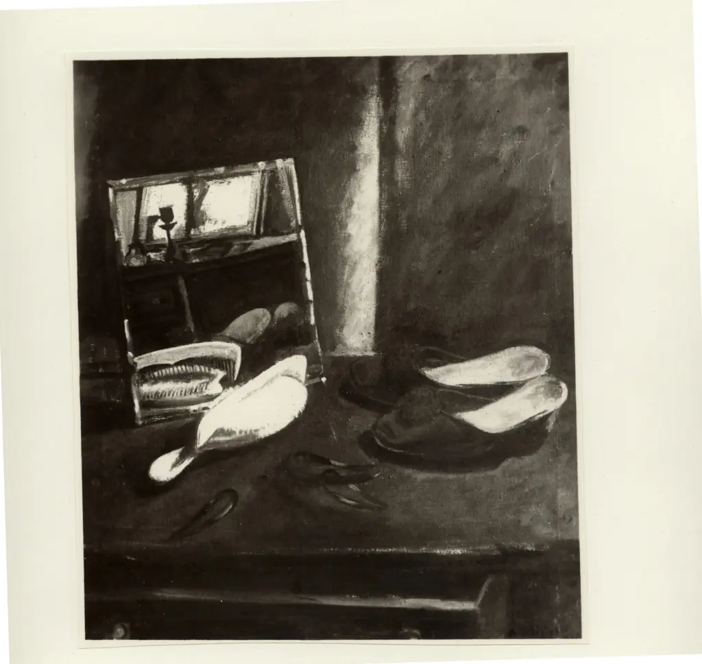 ![Caligiani, Alberto , Comodino con specchio, spazzola e pantofole]()