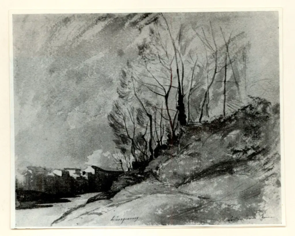 ![Harpignies, Henri-Joseph , Disegno per Les chênes du Château-Renard]()