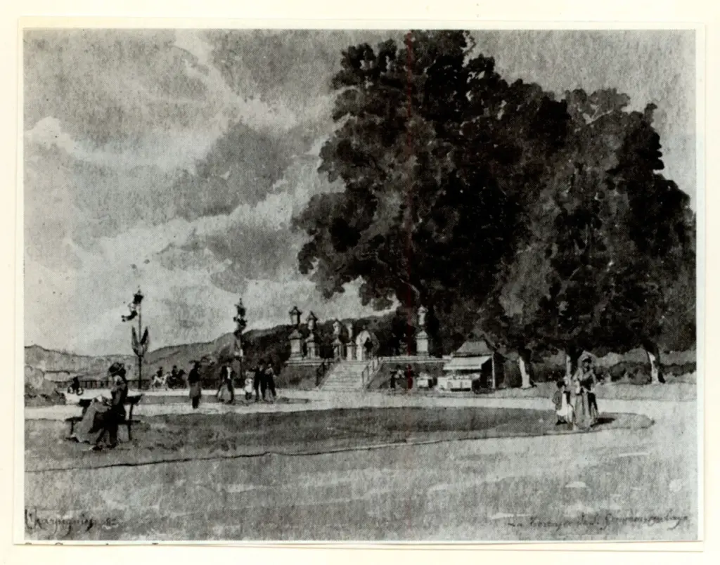 Harpignies, Henri-Joseph , Giardino con persone che passeggiano Harpignies, Henri-Joseph