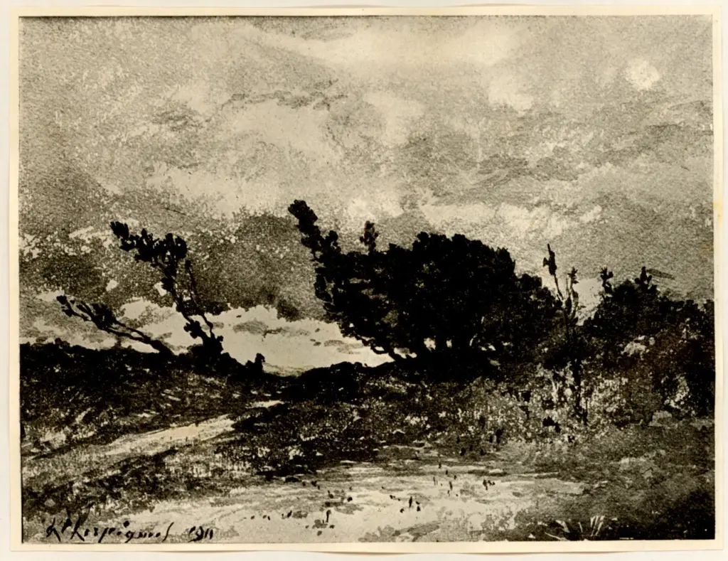 Harpignies, Henri-Joseph , Disegno per Les chênes du Château-Renard Harpignies, Henri-Joseph