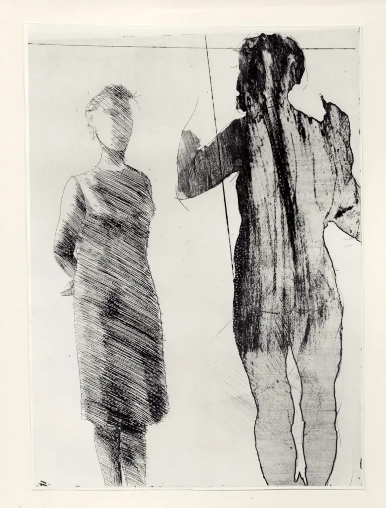 Manzù, Giacomo , Pittore di spalle e modella in piedi vista di fronte Manzù, Giacomo