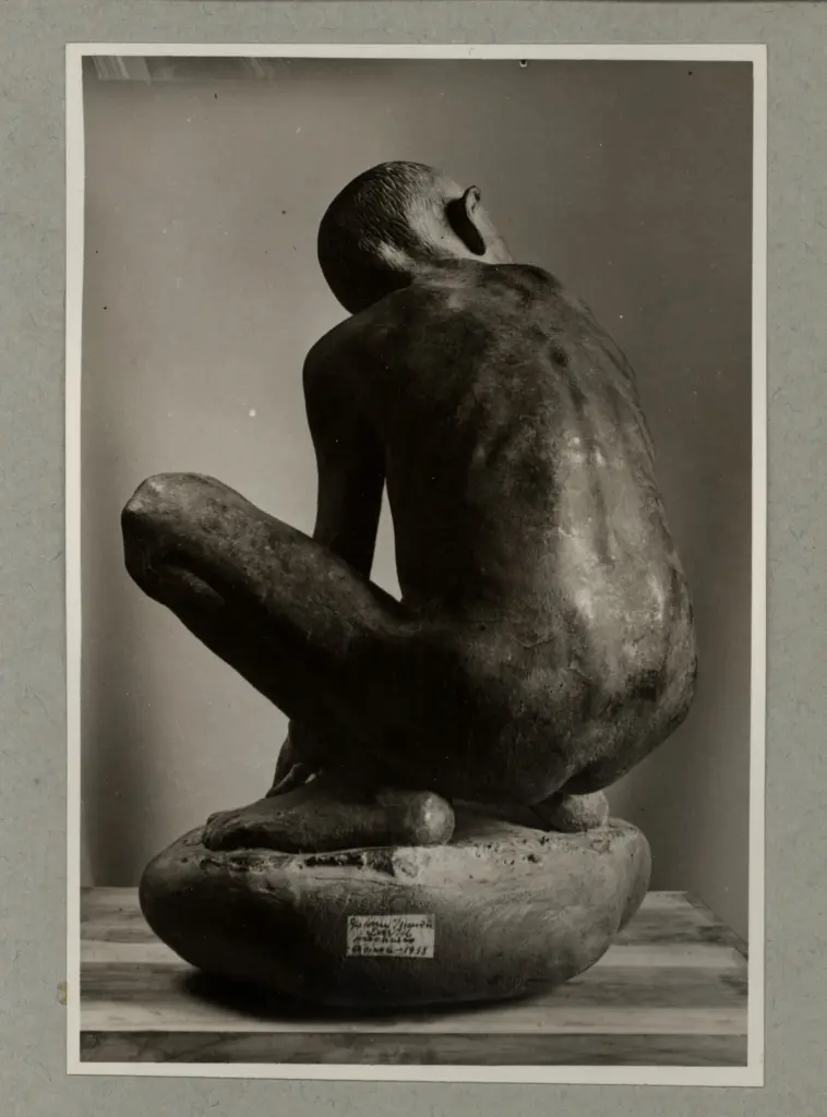 Manzù, Giacomo , Donna seduta tra spighe di grano Manzù, Giacomo