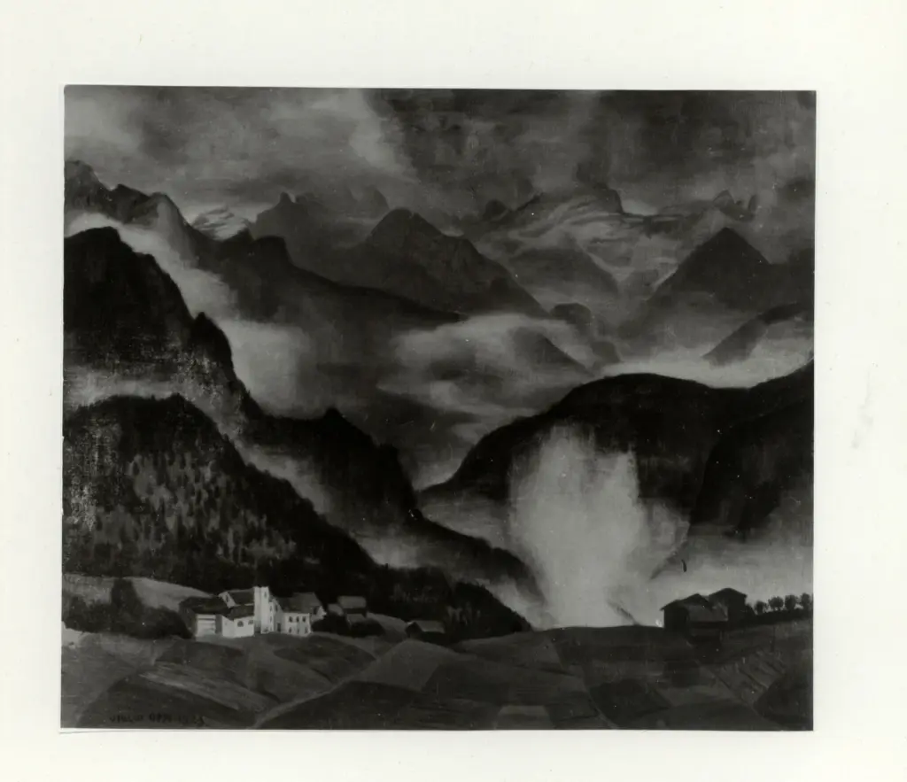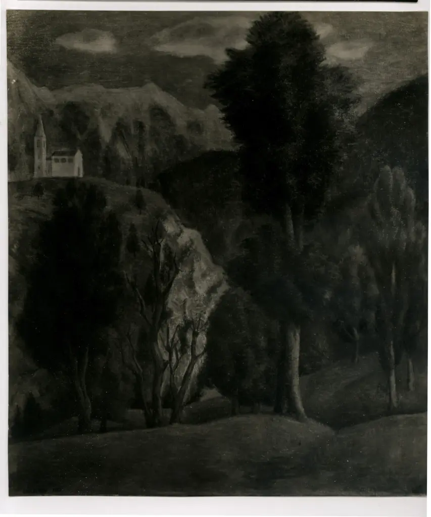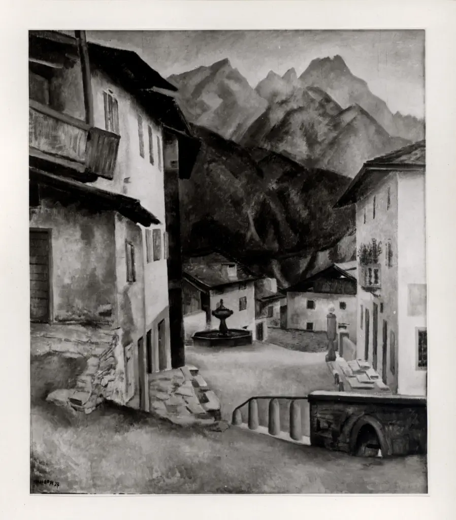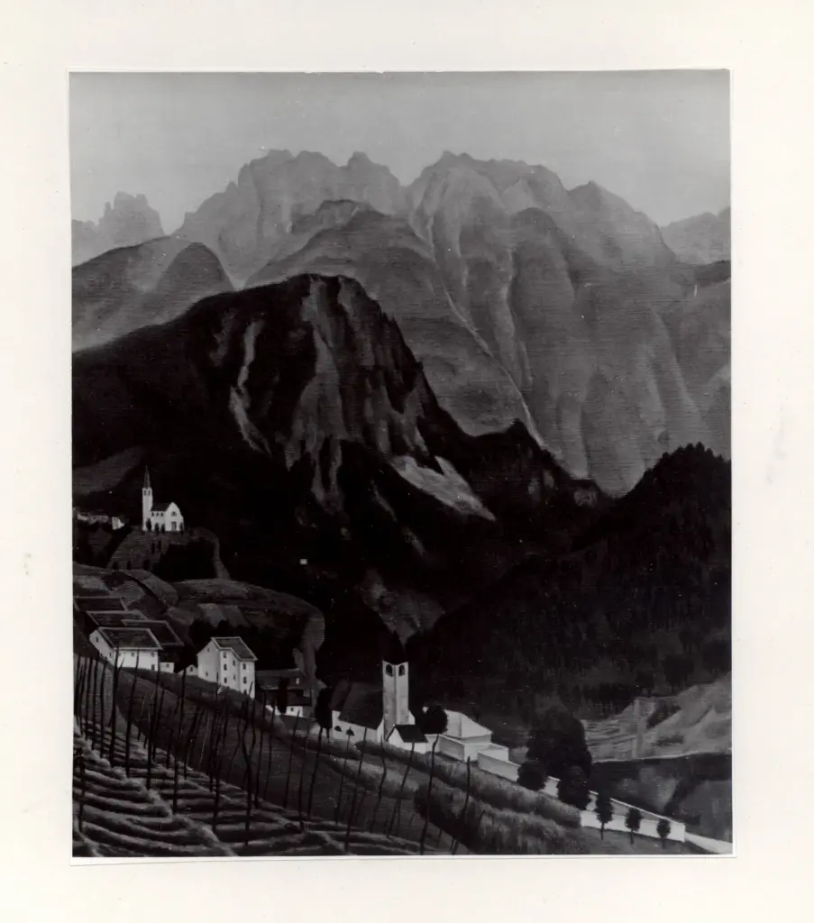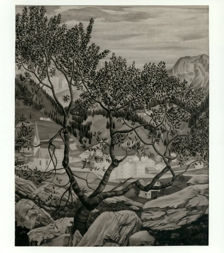 Oppi, Ubaldo , Paesaggio di montagna con chiesa gotica Oppi, Ubaldo