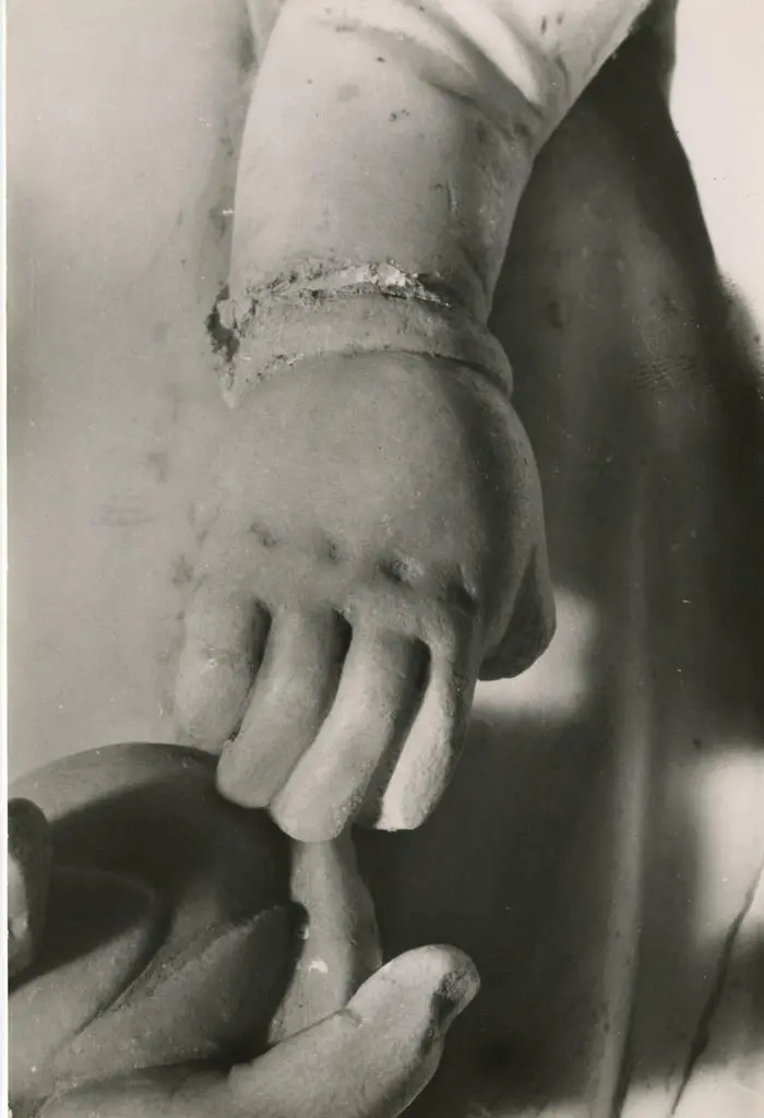 Pisano Nino - sec. XIV - Angeli adoranti la Madonna con Bambino. Particolare del braccio del Bambino