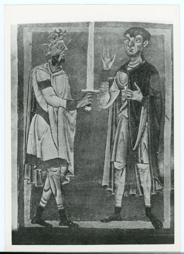 , Iniziale F, Iniziale istoriata, Scena di dedica di un libro, Motivi decorativi fitomorfi Iniziale F, Iniziale istoriata, Scena di dedica di un libro, Motivi decorativi fitomorfi