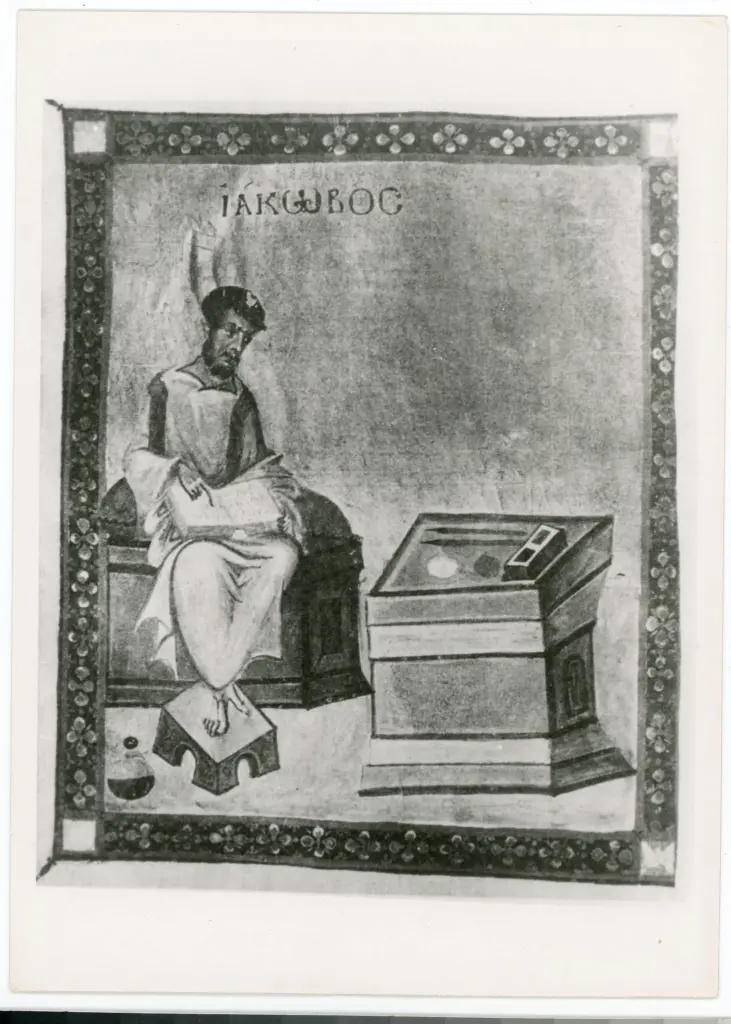 ![ , Santo profeta, Animali, Cornice con motivi decorativi geometrici]()