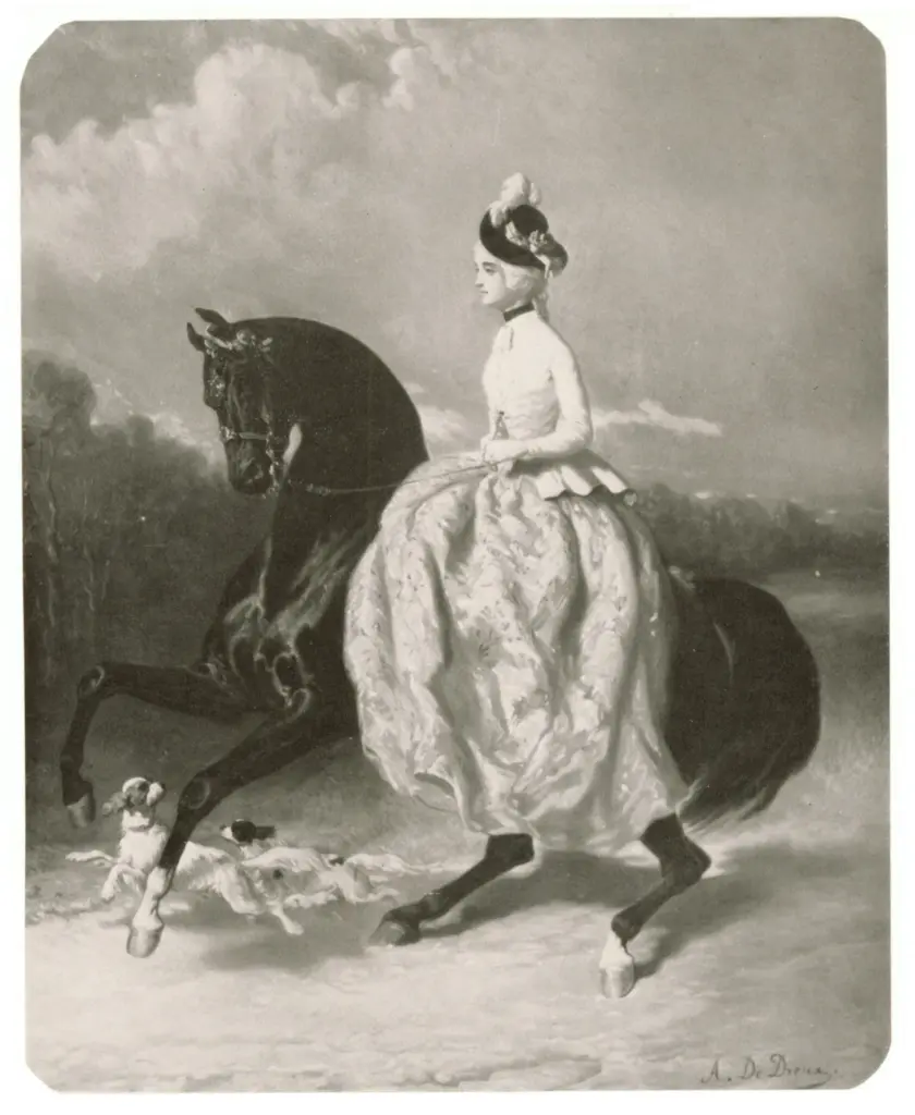 ![De Breux, Alfred , Georges Sand on a Black Horse]()