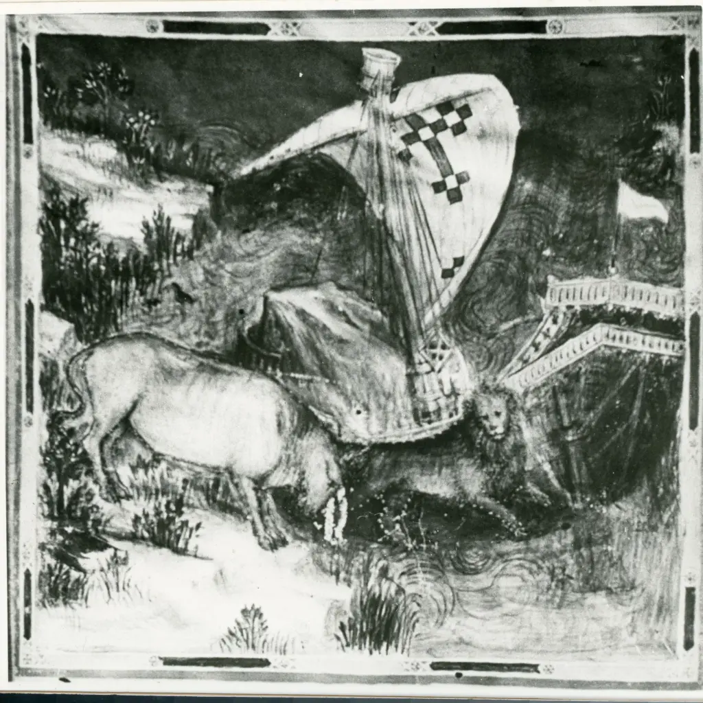 Altichiero , Allegoria della guerra di Chioggia, Barca a vela, Leone, Toro Altichiero