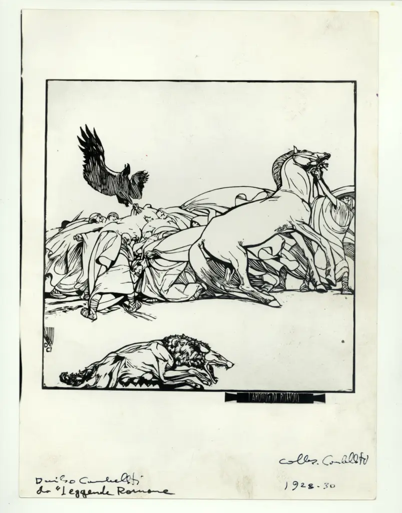 ![Cambellotti, Duilio , L'apoteosi di Romolo (da "leggende romane")]()