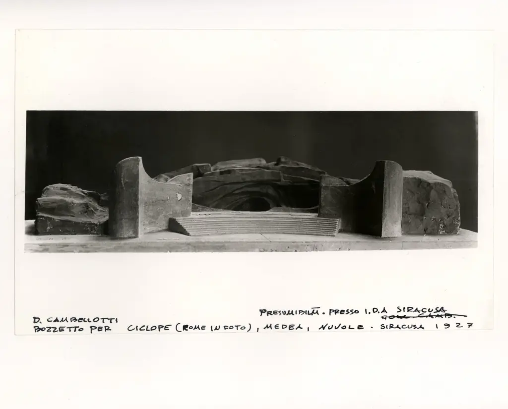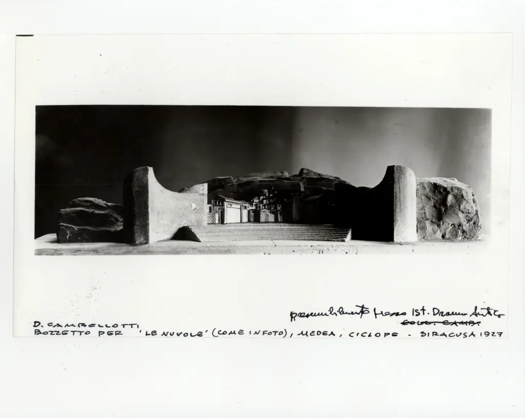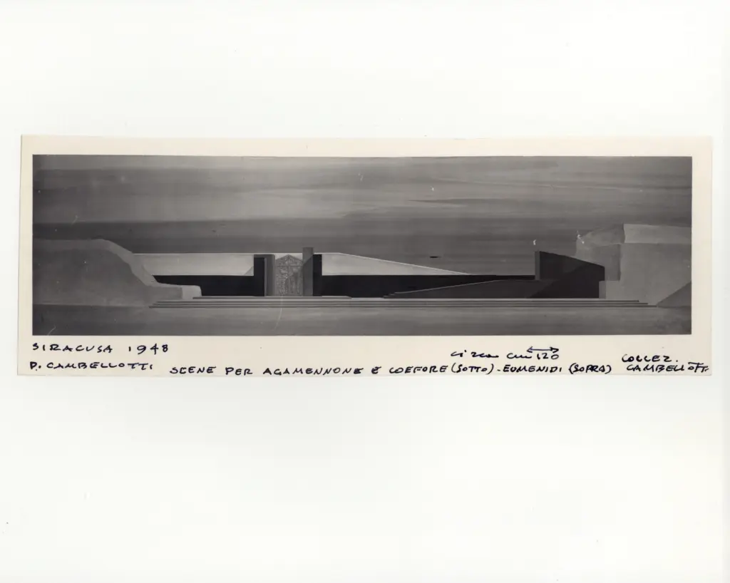 Studio di scena a prismi girevoli per "Edipo a Colono" e "Sette Tebe"
