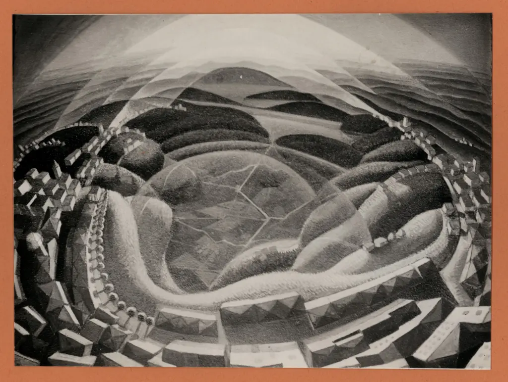 Dottori, Gerardo , Sull'isola dei vulcani - aereopittura Dottori, Gerardo