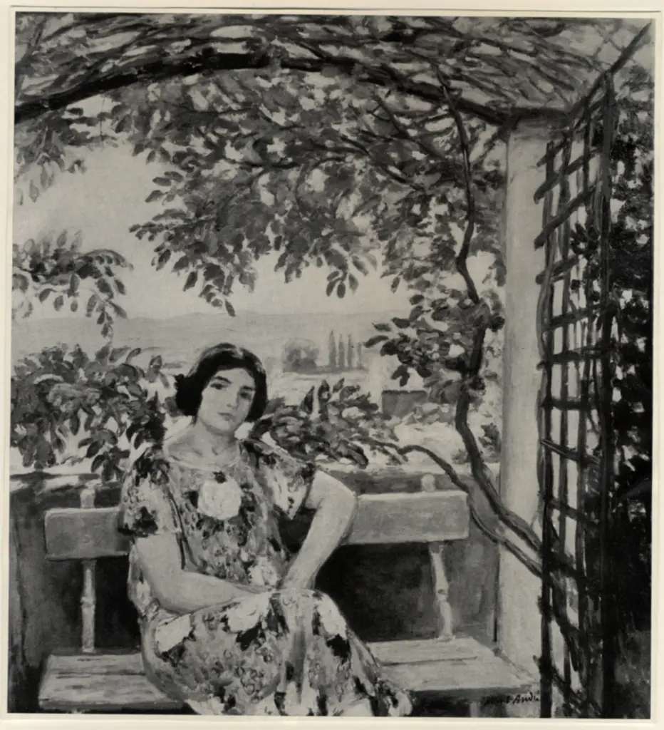 André, Albert , La tonnelle, jeune fille assise sur un banc André, Albert