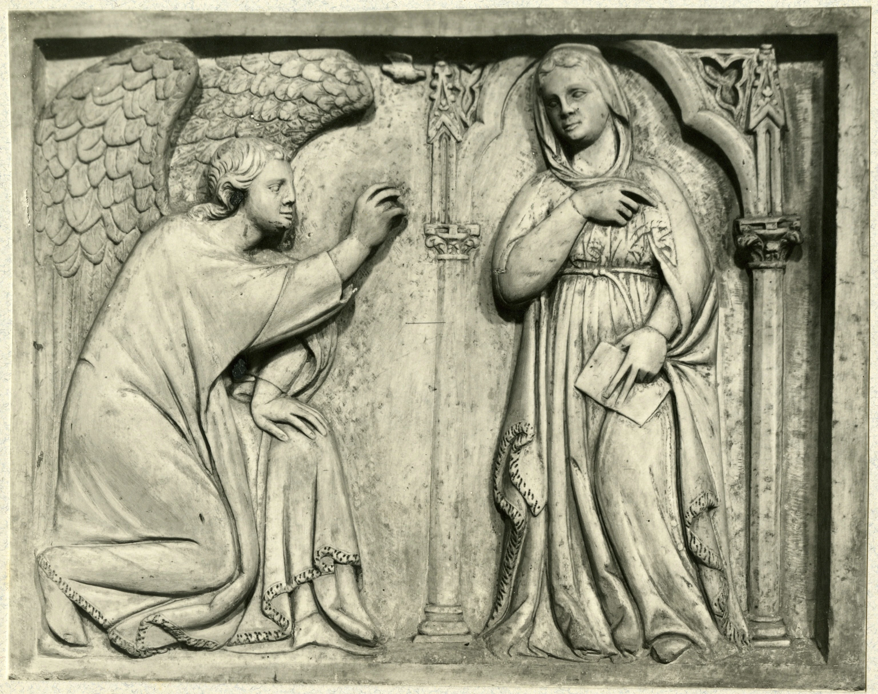 Anonimo , Pisano Giovanni - ambito - sec. XIV - Annunciazione. Copia in gesso dall'originale di Pizzighettone Anonimo
