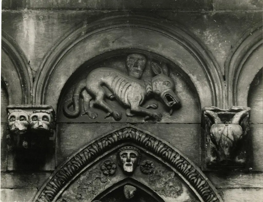 Anonimo , Monofora del fianco sud del Duomo di Carrara, particolare con il cane Anonimo