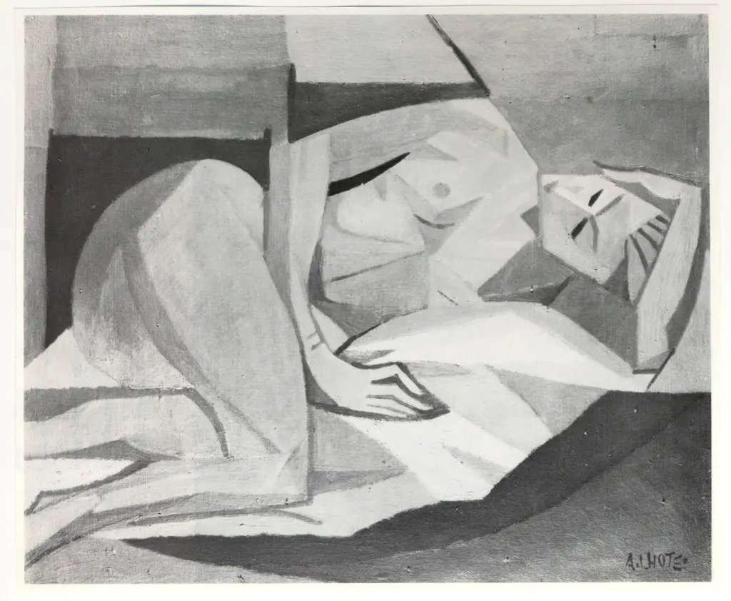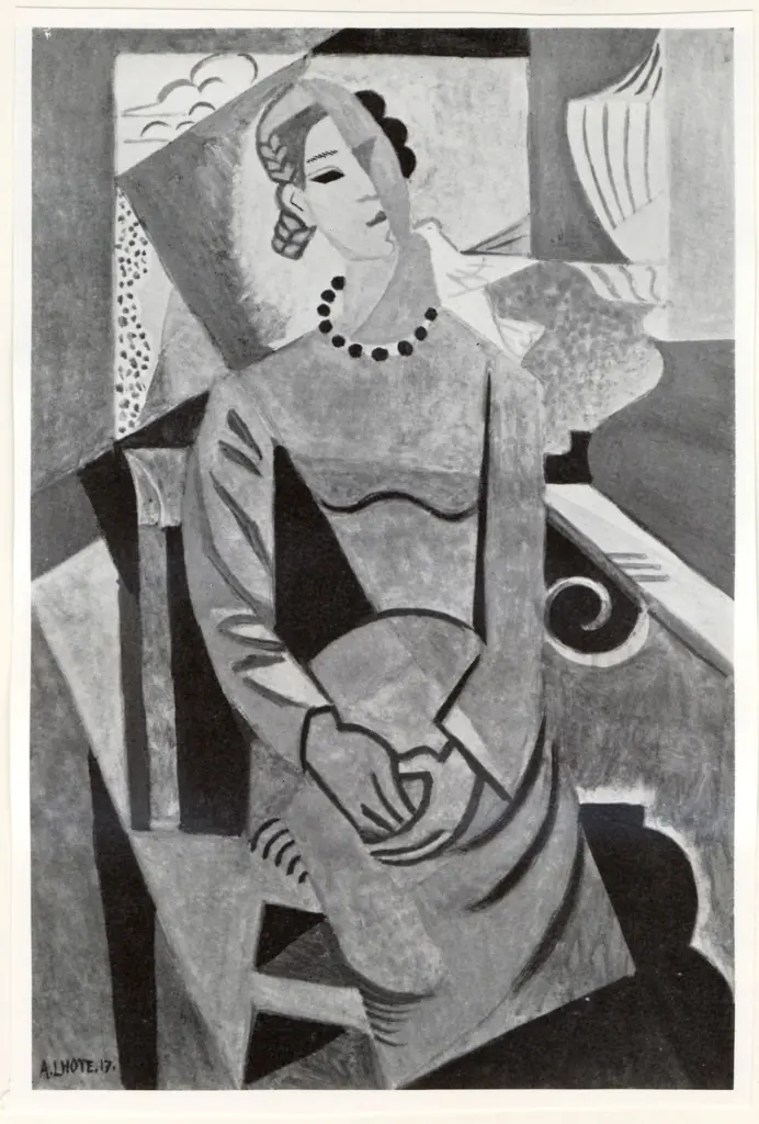 ![Anonimo , Lhote, André - sec. XX - Donna seduta con colomba]()