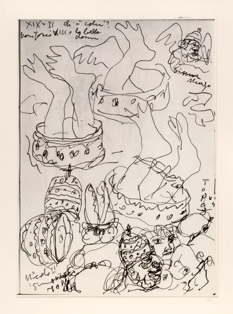 Università di Pisa. Dipartimento di Storia delle Arti , Zancanaro, Antonio - sec. XX - Seduttori e Ruffiani - foglio 5 verso e foglio 6 recto Università di Pisa. Dipartimento di Storia delle Arti