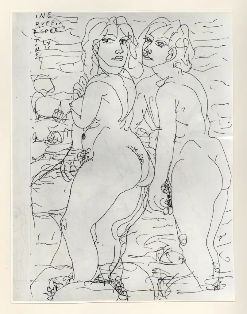 Università di Pisa. Dipartimento di Storia delle Arti , Zancanaro, Antonio - sec. XX - "Divina Commedia": quaderno B, foglio 12 recto: "Ruffiani e corruttori" Università di Pisa. Dipartimento di Storia delle Arti
