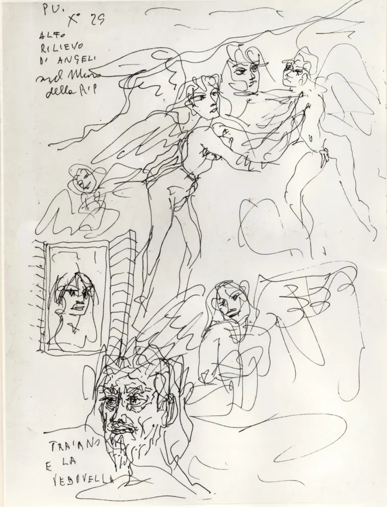 Università di Pisa. Dipartimento di Storia delle Arti , Zancanaro, Antonio - sec. XX - "Divina Commedia": quaderno B, foglio 6 recto: "Alto rilievo di angeli" Università di Pisa. Dipartimento di Storia delle Arti