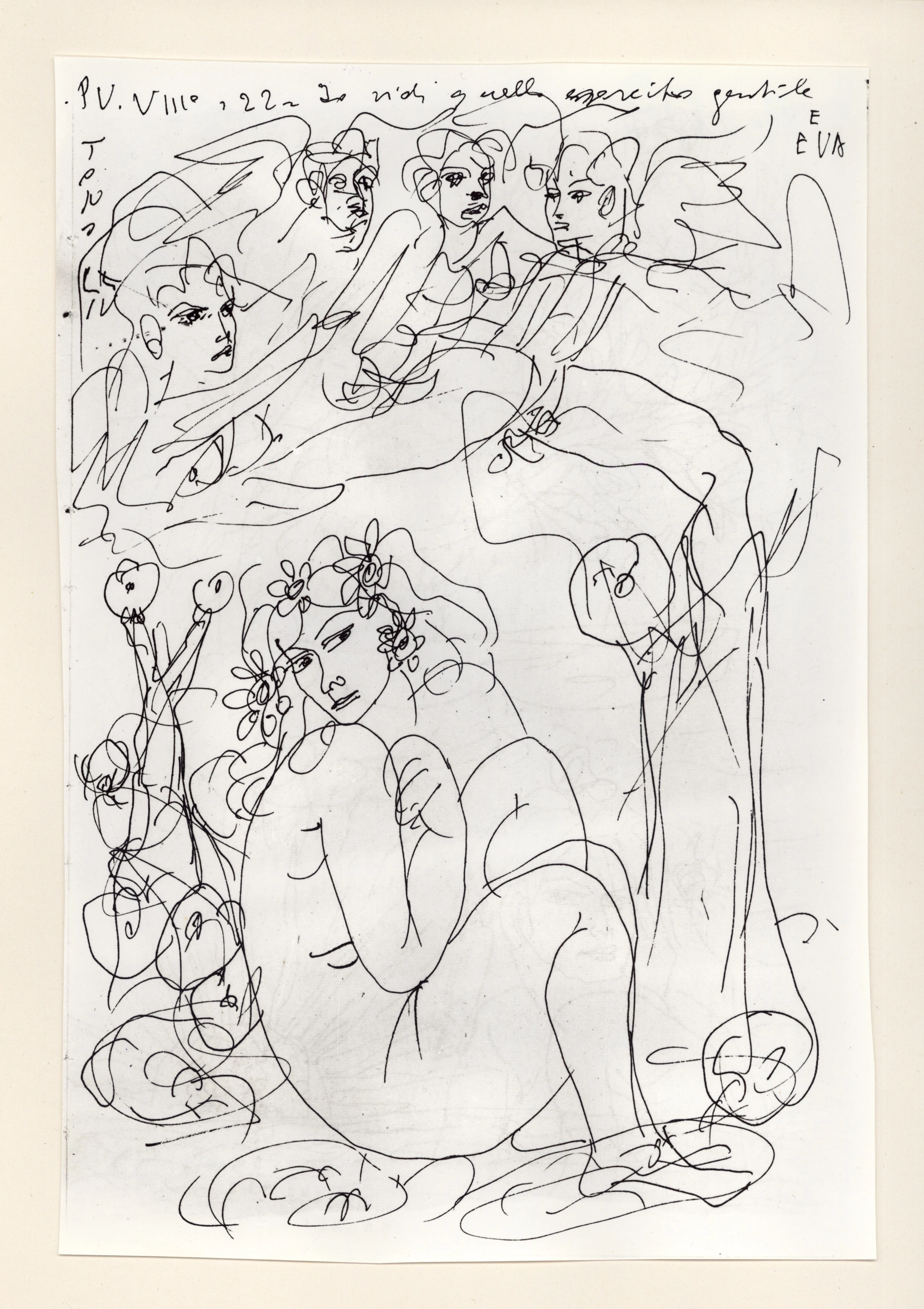 Università di Pisa. Dipartimento di Storia delle Arti , Zancanaro, Antonio - sec. XX - "Divina Commedia": quaderno B, foglio 4 recto: "Eva" Università di Pisa. Dipartimento di Storia delle Arti