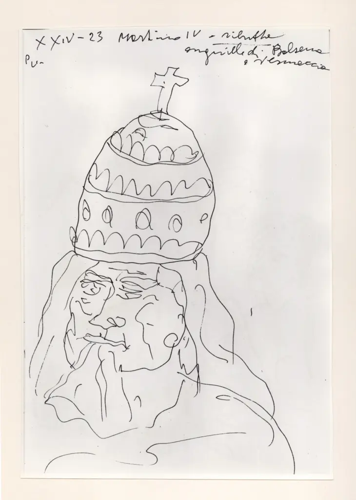 Università di Pisa. Dipartimento di Storia delle Arti , Zancanaro, Antonio - sec. XX - "Divina Commedia": quaderno B, foglio 19 recto: "Martino IV" Università di Pisa. Dipartimento di Storia delle Arti