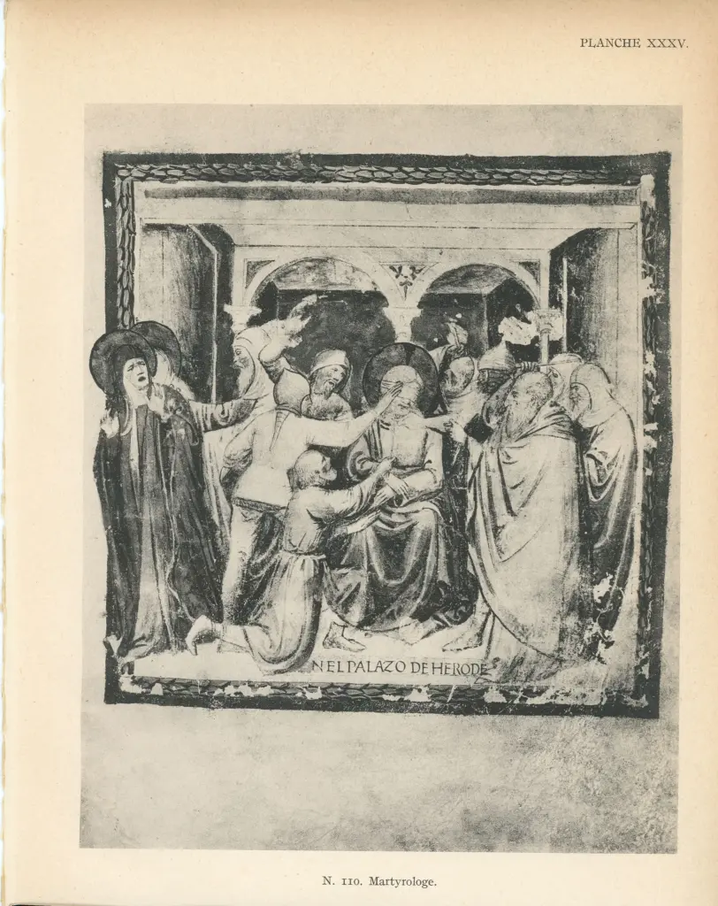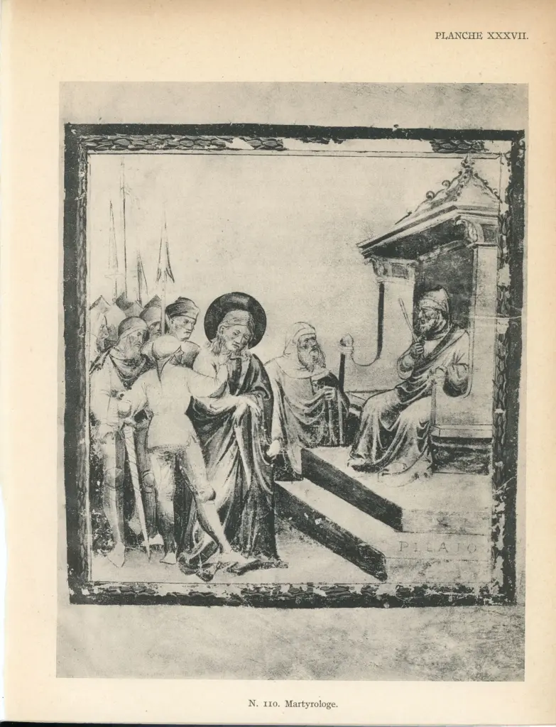 ![Anonimo , Maestro del Martirologio dei Battuti Neri di Ferrara - sec. XV - Venezia, Fondazione Giorgio Cini, ms. 2501/2, f. 14v]()
