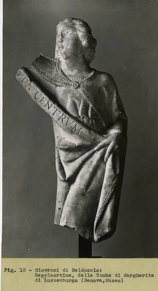 ![Gasparini , Giovanni di Balduccio: Reggicortina, dalla Tomba di Margherita di Lussemburgo (Genova, Museo)]()