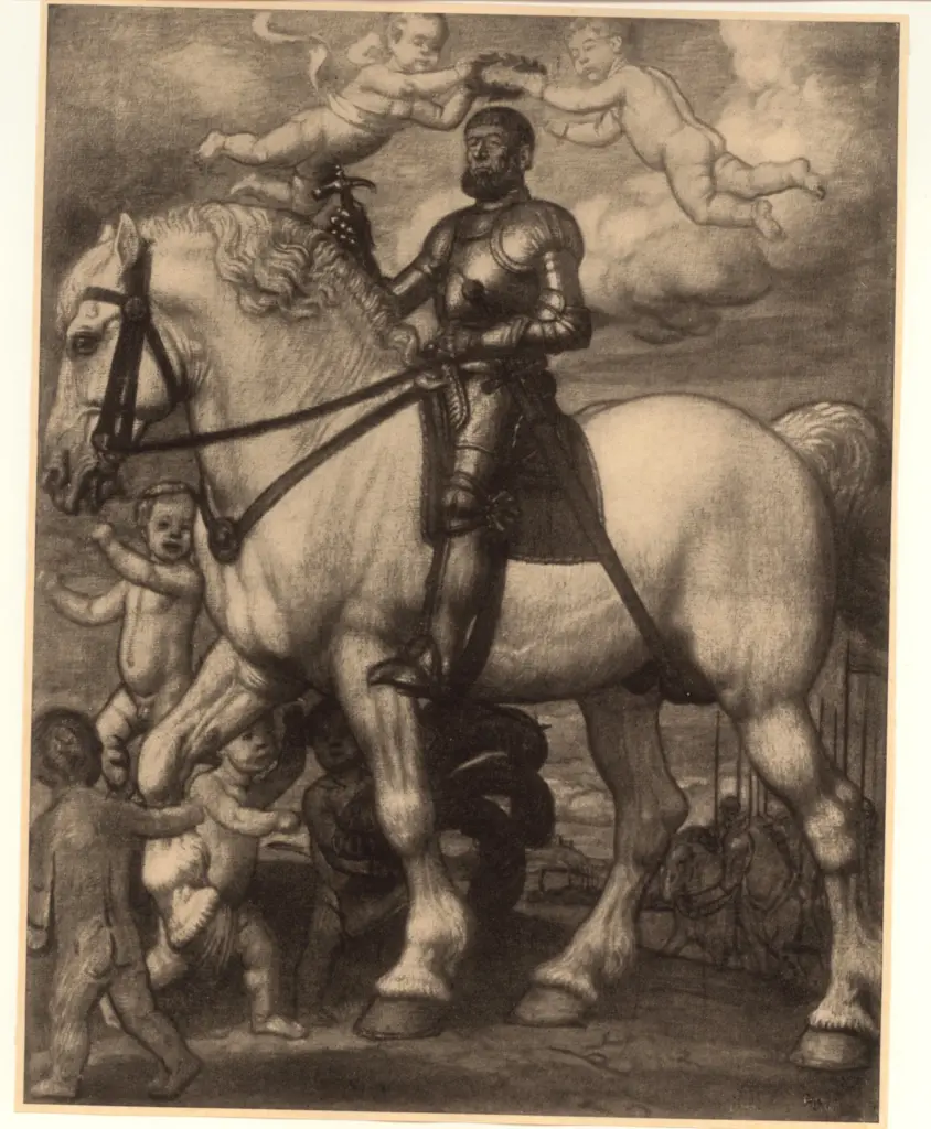 Ritter zu pferd mit amoretten