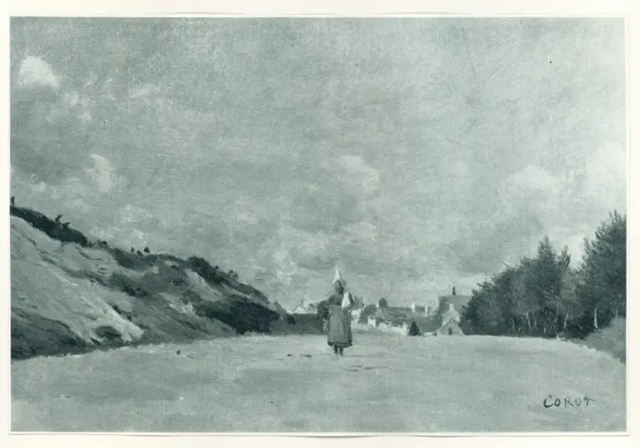 ![Corot, Jean Baptiste Camille , Contadina che si allontana dal paese]()