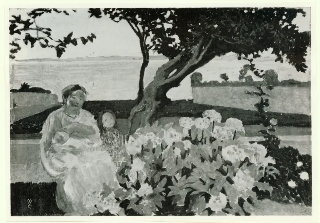 Denis, Maurice , Mére et enfants dans le jardin au bord de la mer Denis, Maurice
