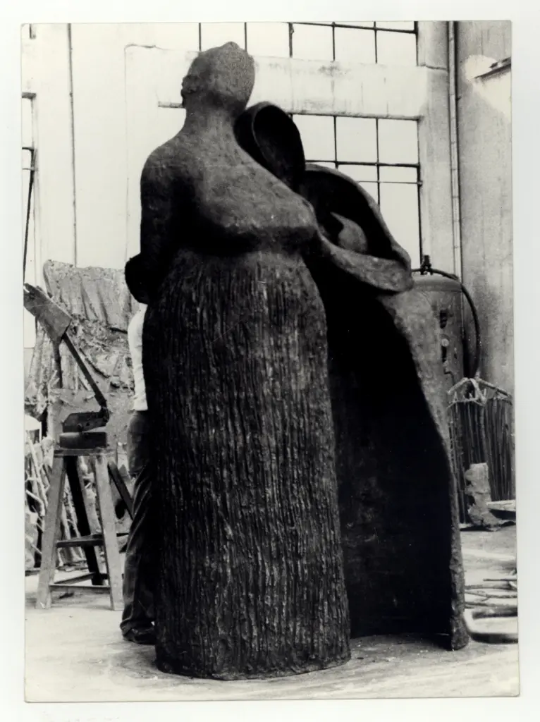 ![Gorni, Giuseppe , Due donne. Giuseppe Gorni nello studio di Nuvolato presso la Fonderia GI.BI.ESSE nel giugno 1974]()