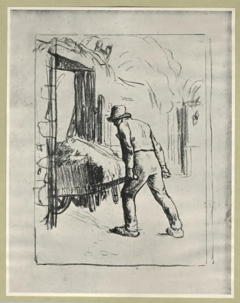 Millet, Jean Francois , Uomo che spinge un carrello di fieno Millet, Jean Francois