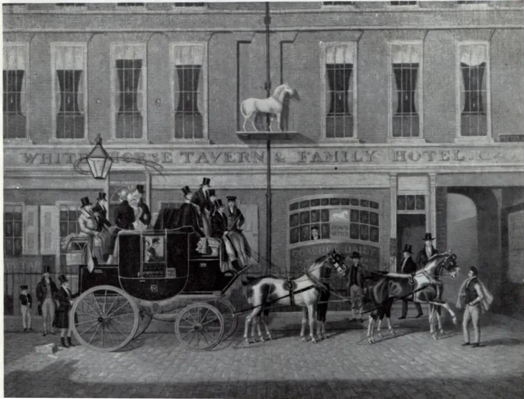 The Cambridge Telegraph coach outside the White Horse Taven in Fetter Lane