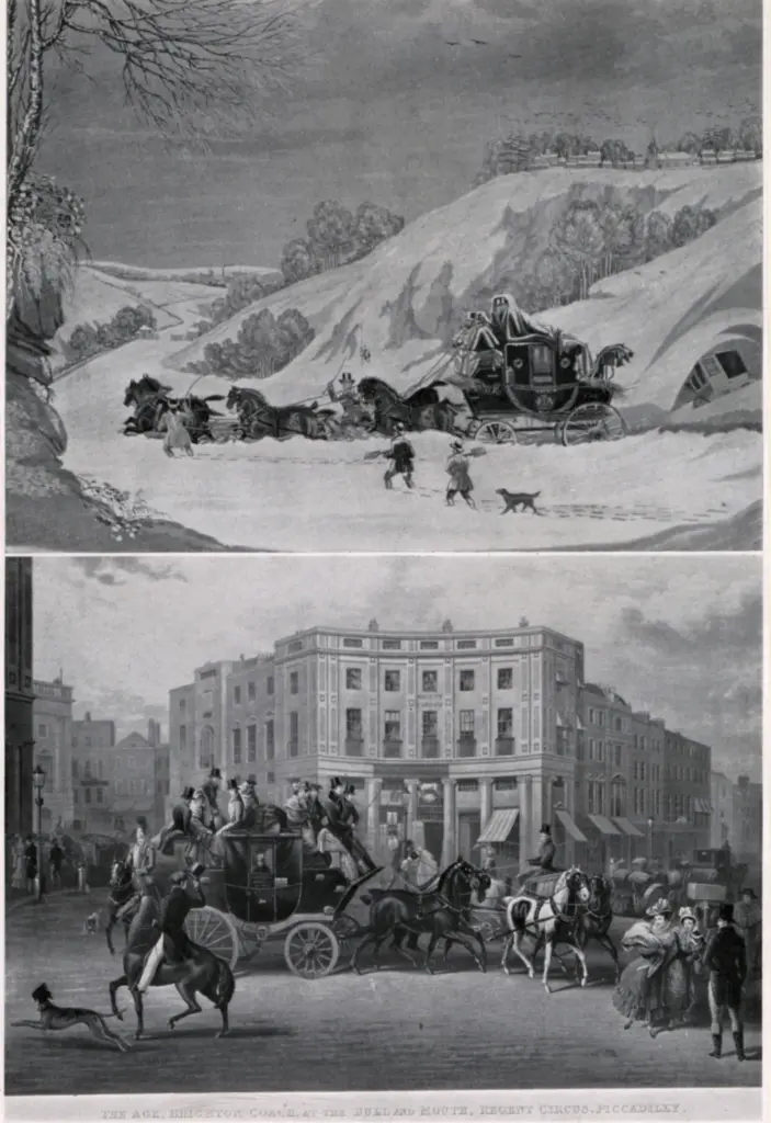 ![Pollard, James , West Country Mails at the Gloucester Coffee House, Piccadilly]()