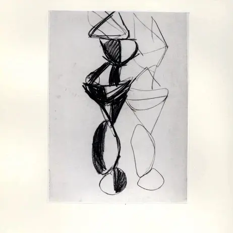 ![Tavernari, Vittorio , Schizzo per scultura verticale femminile]()