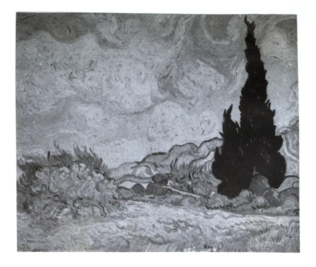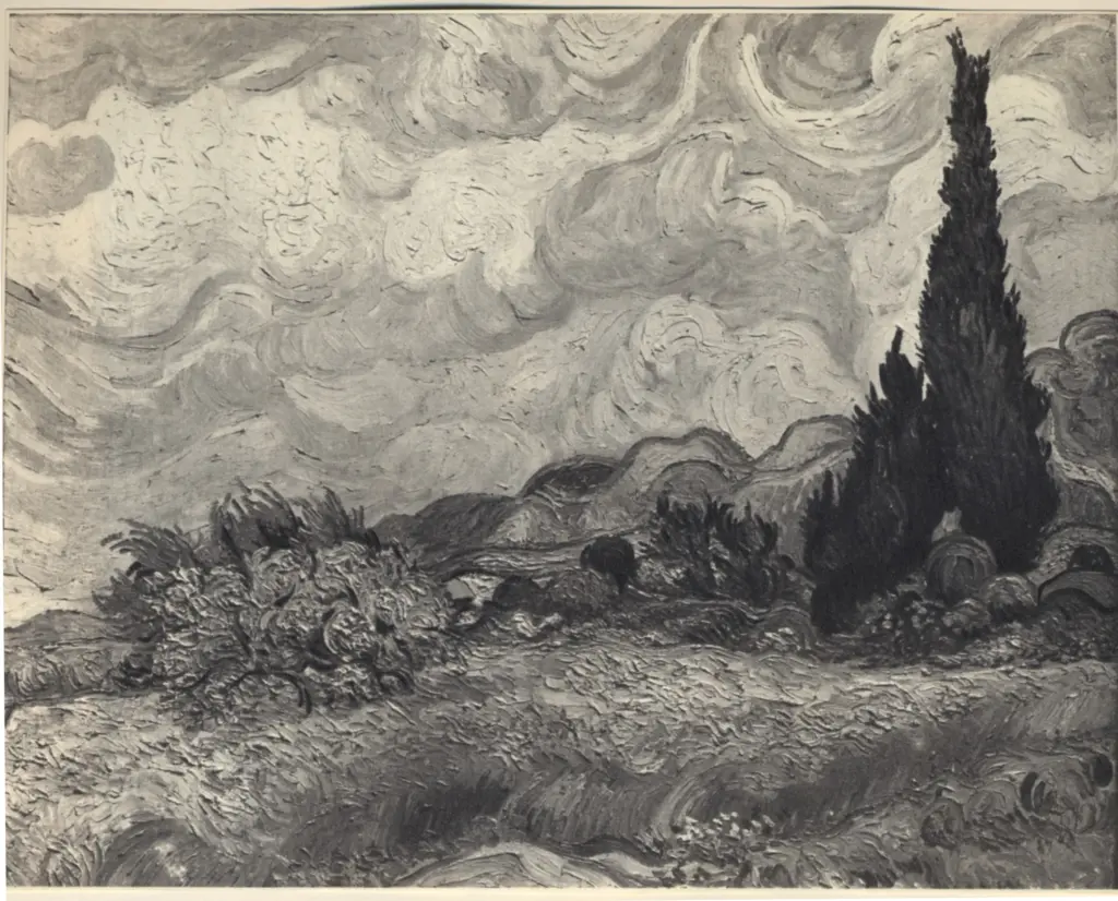 Campo di grano con cipressi e altri alberi (Il cipresso e l'albero fiorito)