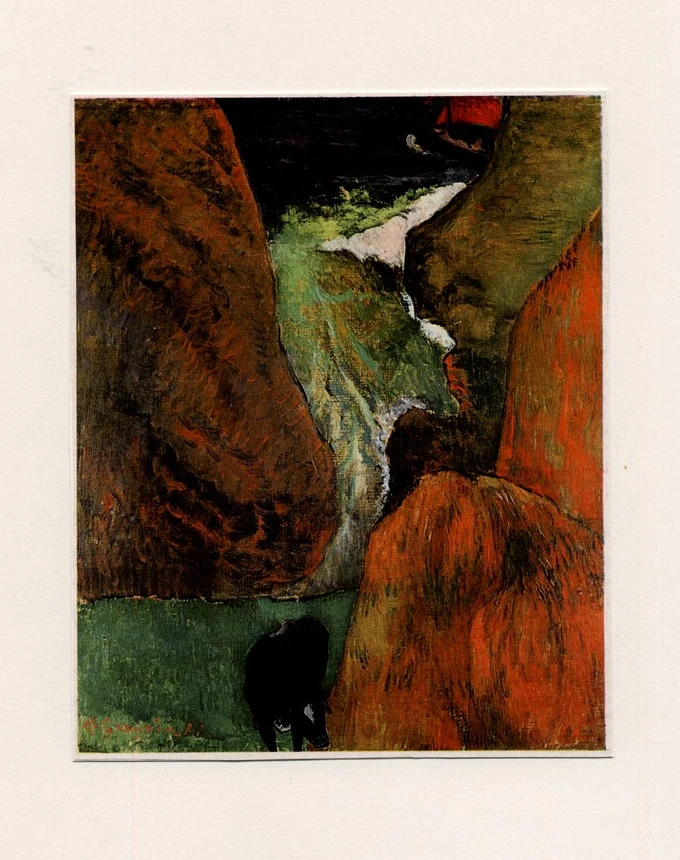 ![Gauguin, Paul , Au dessus de l'abìme, paesaggio con toro]()