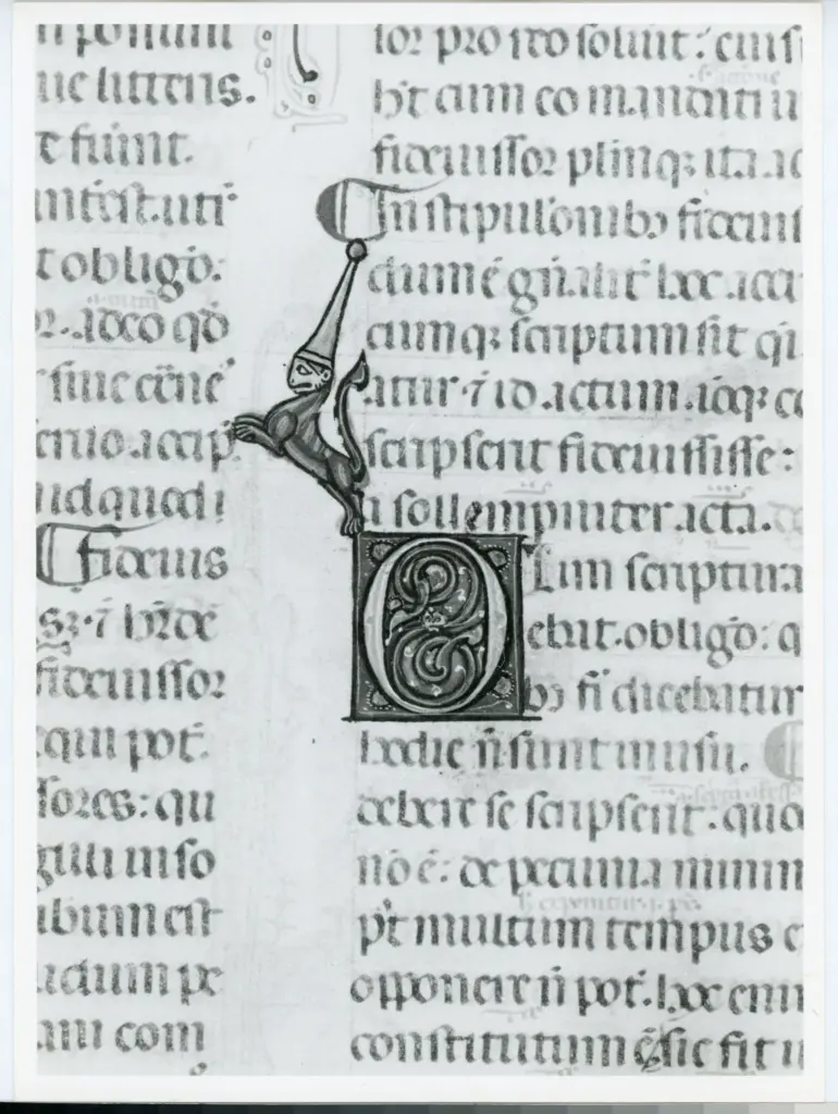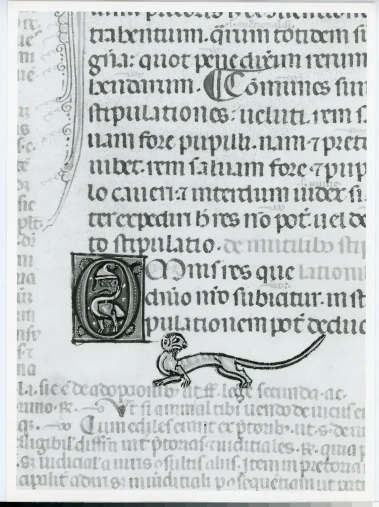 Iniziale O, Iniziale decorata, Motivo decorativo con animali fantastici