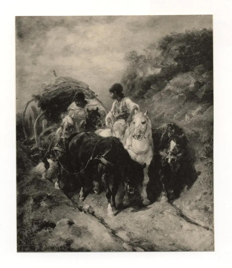 , - cavalli che tirano un carro con due uomini ![Marini, Marino , - Cavallo]()